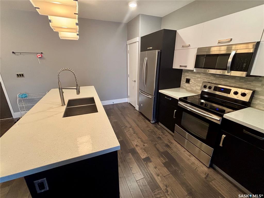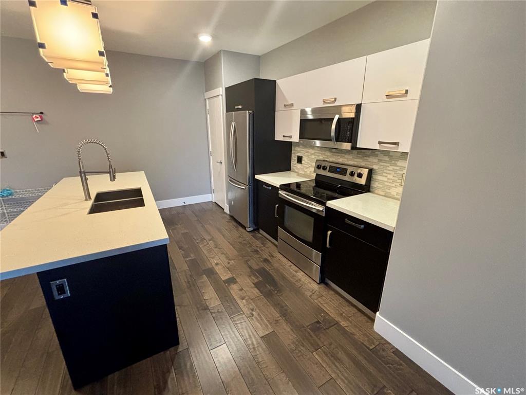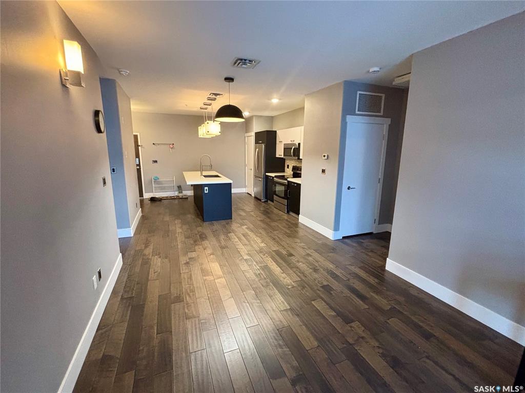 TriBeCa in one of Saskatoon’s most desirable and vibrant areas. This amazing building really draws attention when you see it. Great proximity to U of S, Broadway and Downtown. Featuring engineered hardwood floors in living and dining area, heated tile floors in bathrooms, individual furnace, central air, stainless steel appliances, quartz counter tops, large balcony with glass railings, N/G bbq hook up and heated underground parking. 2 bedroom with access to balcony from primary bedroom, large en suite with...