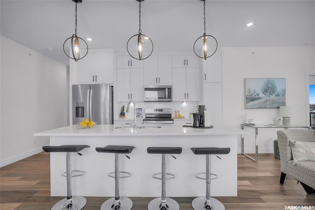 Welcome to 300-105 Willis Crescent, a bright and inviting top floor 2 bedroom, 2 bathroom corner unit offering comfort, convenience, and modern living in desirable Stonebridge. This thoughtfully designed unit faces east, providing peaceful views and beautiful natural light throughout the day. The open-concept layout features a modern kitchen with stainless steel appliances, tile backsplash, ample cabinetry, and an island perfect for entertaining. The living room opens onto a private balcony with natural gas...