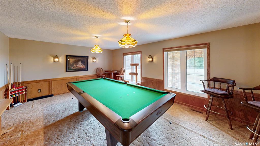 Welcome to 12 Pearl Crescent in Emerald Park. This custom built, 2,225 square foot, 3 bedroom 3 bathroom, bungalow sits on a .98 acre lot. It's serviced by a private well system, eliminating monthly water costs while also efficiently supplying the underground sprinkler system. The front showcases the brick exterior with elegant arches, fiberglass shingles and access to the triple attached, fully insulated garage with custom overhead doors. The backyard has a sprawling lawn, trees, greenery and a 500 sq ft d...