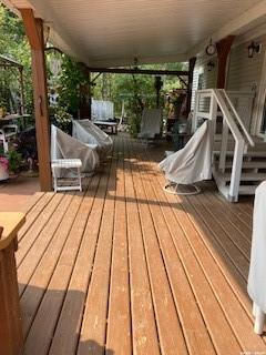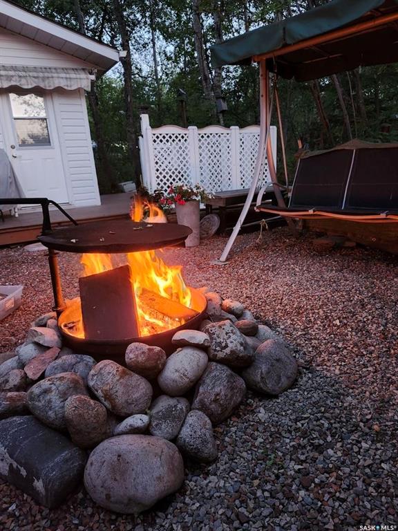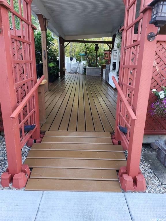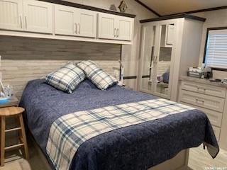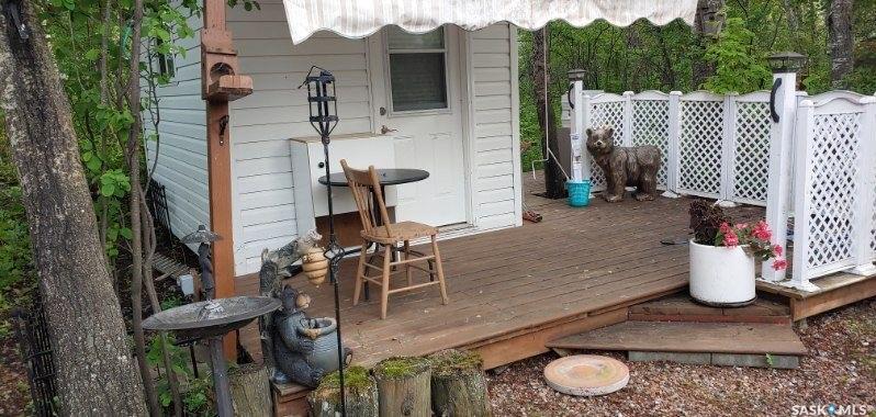 Mature and private large corner leased with gravelled parking lot for up to 5 vehicles Park model was custom made in 2019 by Lazy boys in Prince Albert and moved onto the lot. It is designed for wheelchair accessibility inside. It is 16 ft wide and 35 ft long with 490 square feet floor space. Sleeps 4, fully furnished, with a indoor fireplace and large TV included. Air conditioned and heat Off the park model is a newly stained (summer of 2025) wood deck approximately 12 ft wide by 35 ft long/ there is...
