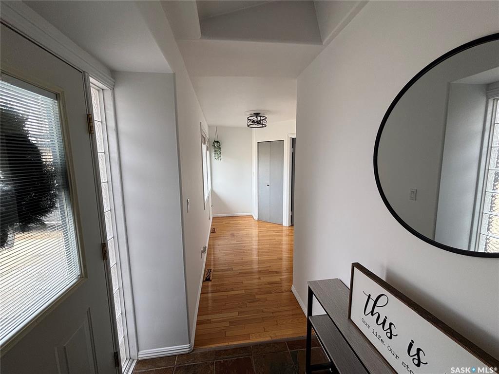 Welcome to 1414-2nd St in Estevan. Upon entering this 1430 sq.ft bungalow you will be welcomed by a large Porch/foyer that has a closet that is plumbed for main floor stackable laundry set. There is 1 large bedroom as well in this part of the house that was an addition in 2010. The large living room featuring hardwood floors and fireplace makes for a cozy family space. The main floor also features a large dining room/kitchen, 2 more bedrooms and 4 pc bath. Abundant hardwood flooring throughout main f...