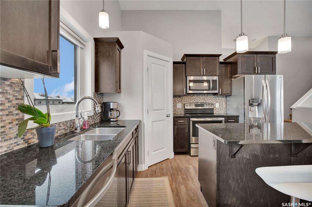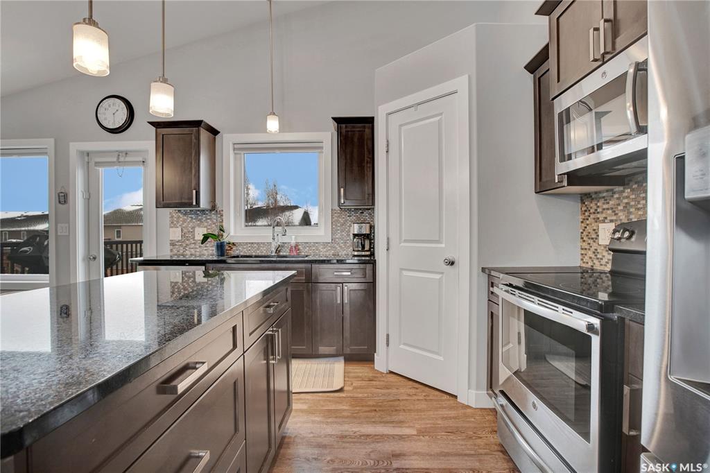 Welcome to 340 Haichert Street, nestled in the quiet, family-oriented community of Warman. This 1,253 sq ft modified bi-level offers the perfect blend of space, comfort, and modern style. Step inside to an inviting open-concept main floor featuring a large living room with maple railings and metal spindles, soaring vaulted ceilings, and an abundance of natural light throughout. The kitchen is a standout — showcasing granite countertops, rich maple cabinetry, a large eat-up island, tile backsplash, corner wa...