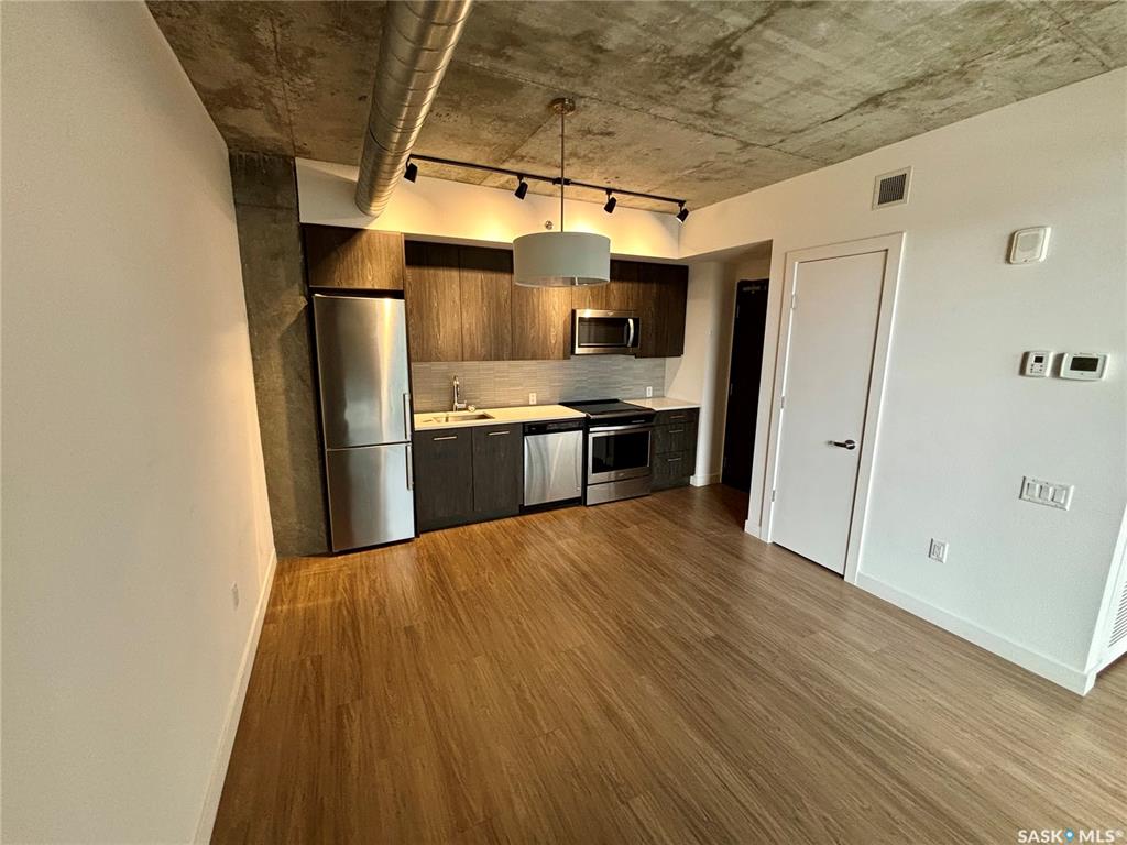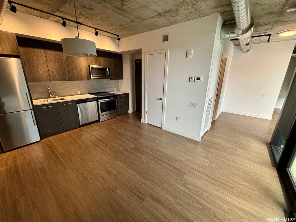 Welcome to Unit 804 at 490 2nd Ave S. This bright 1-bedroom, 1-bathroom condo sits on the 8th floor of a sought-after riverfront building, offering beautiful views and abundant natural light. The suite features quartz countertops, in-suite laundry, and one underground heated parking stall. Residents enjoy access to a fitness centre overlooking the river, a spacious amenities room, and elevator access. A perfect blend of comfort, convenience, and location. The nook refers to space in hall which will fit a sm...