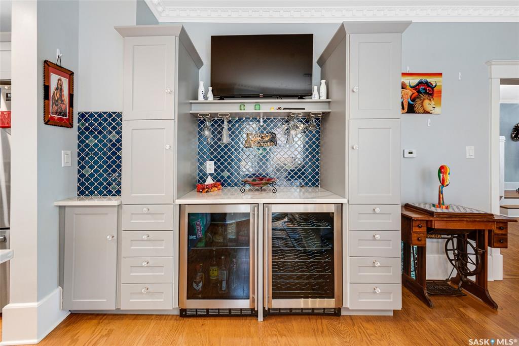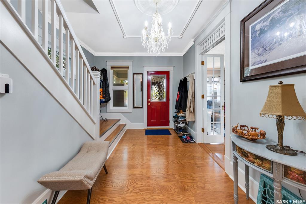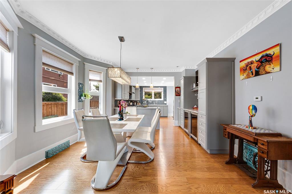 Just steps from the Saskatchewan River, tucked into the historic Nutana Neighbourhood, this Character 1911 home has been lovingly restored for clients who appreciate the history and location of this property. This spacious home has a completely renovated kitchen with quartz countertops, new cupboards and backsplash, under counter lighting, all new appliances, including a newer large wine and beer fridge and a nice open floorplan flowing through to the dining room and living room. An office space and main fl...