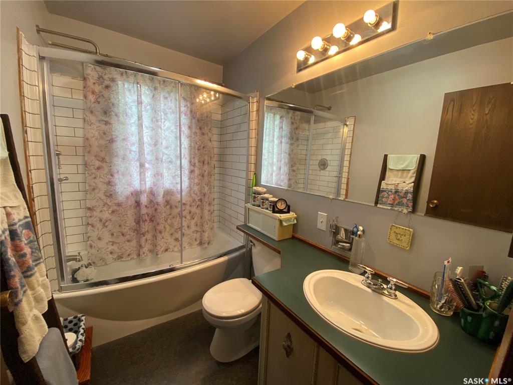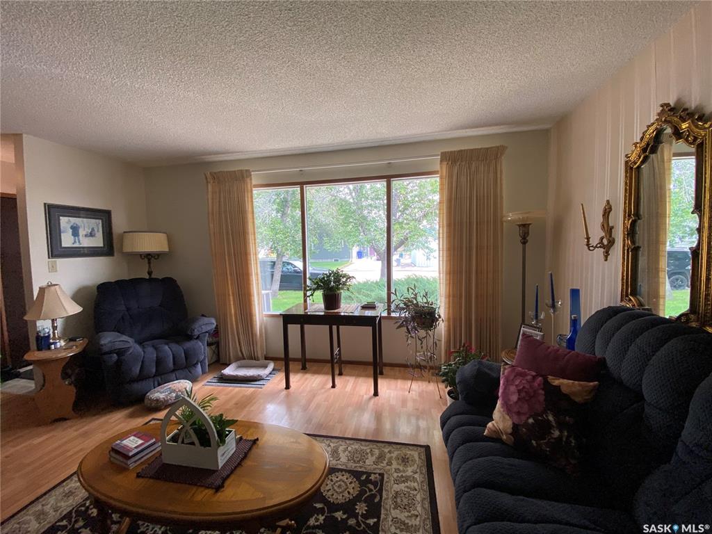 620 4th Street SW, Eston. Nestled beautifully in it's spot with mature trees on an oversized lot, this 1974 4-level split is ready to welcome its new owners. You will enter the home to the living room with large window to the front. The kitchen and dining space at the back of the home offers access to the garage as well as to the back deck. One level up you will find three bedrooms, the primary bedroom offering a 2-piece ensuite and great closet space. The main bathroom has received a new tub, tile surround...