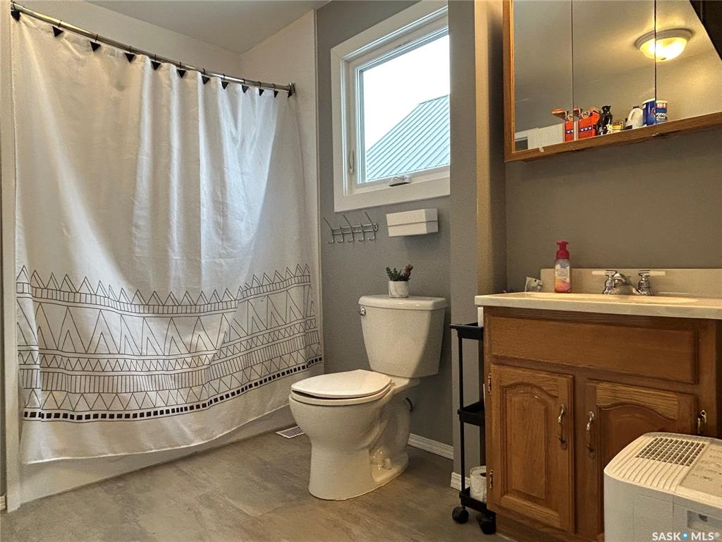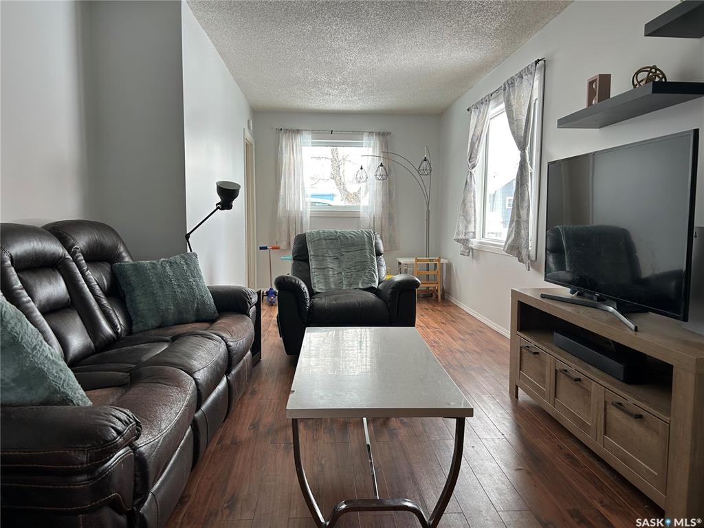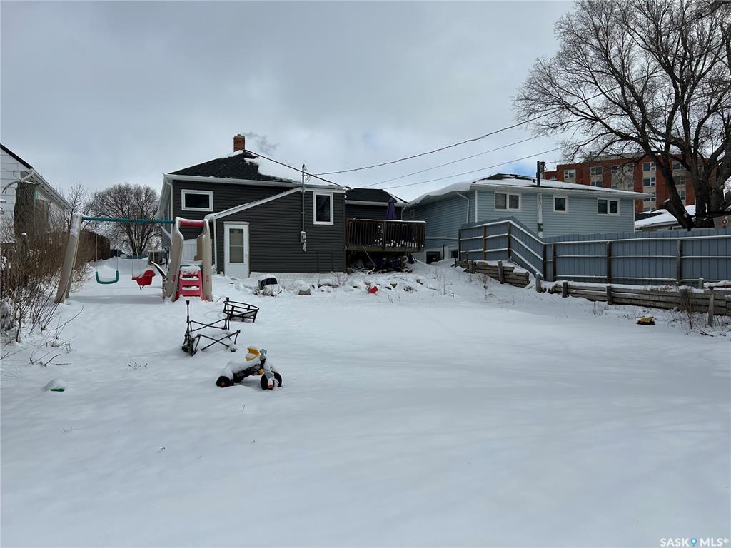 Very nice 1,048 sq. ft. bungalow located just south of the co-op grocery store. This main level features a large living room, dining room and kitchen, two main floor bedrooms of which the master has a walk-in closet, and shared four-piece bathroom with laundry. Updated windows on the main level, as well as ALL new shingles and siding in 2025. Downstairs is partially finished and one room is currently used as a bedroom, one as a work at home office, and the bathroom is plumbed in with a new shower installed....