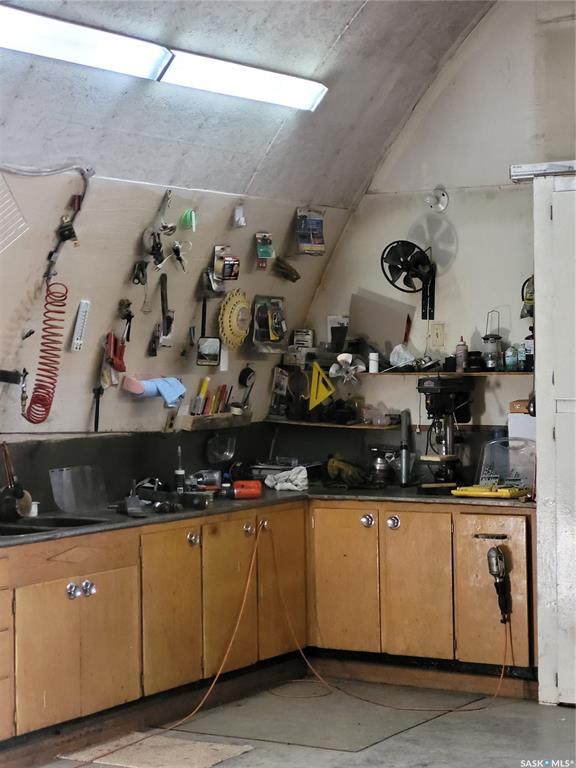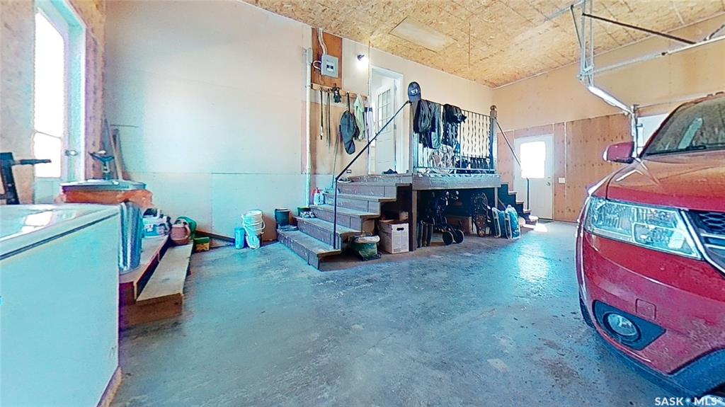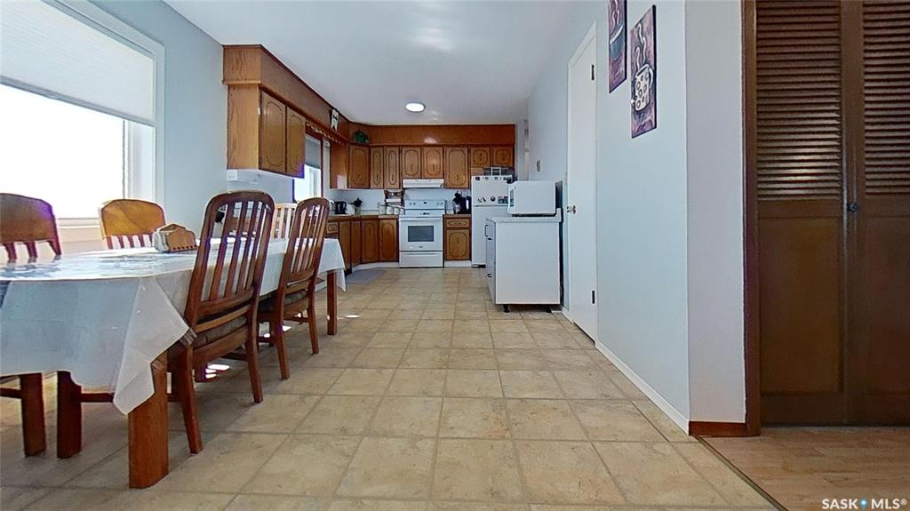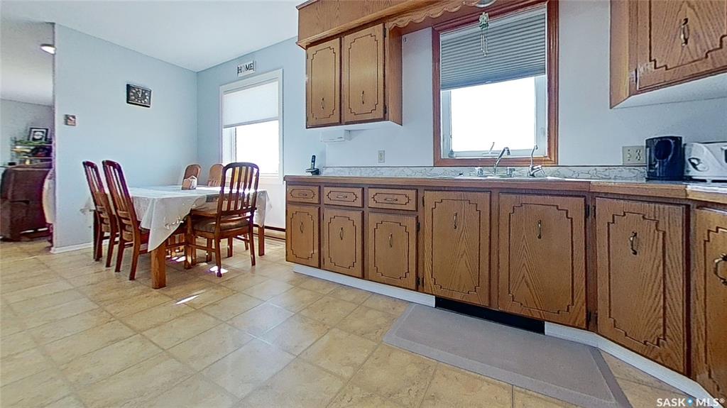 This rural residence in the RM of Longlaketon , Saskatchewan offers 1028 sq. ft. of living space on approx. 10 acres of land, large garden area, saskatoon berry orchard and numerous well maintained outbuildings. The house features a functional layout with two bedrooms and two bathrooms on the upper floor, as well as a kitchen/dining room, living room, and laundry room. The kitchen showcases traditional wooden cabinetry with ornate detailing, complemented by a window above the sink allowing natural light. Be...
