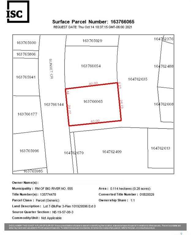 WALKOUT POTENTIAL - incredible value! Check out this excellent lot on Sunset Cove at Cowan Lake, approximately 1.5 hours from Prince Albert and 2.5 hours from Saskatoon in the beautiful Northern Boreal Forest. This 0.28-acre titled parcel is located at the resort community of Sunset Cove, a year-round getaway with many nearby activities including fishing, snowmobiling, watersports, and even skiing at nearby Timber Ridge ski hill. The town of Big River is just 16km away and serves as a service hub for the lo...