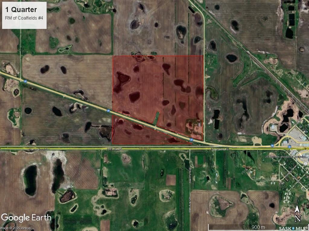 146.28 acres for sale located just west of North Portal, SK in the RM of Coalfields #4 right along the Canada/US border with Highway 39 frontage. The land is split into two parcels by Highway 39, offering both north and south highway exposure providing opportunity for potential future development. The land is currently in crop production. SAMA Field Sheets identify 129 cultivated acres with a 45.1 final rating. Sask Crop Insurance rating is “J”. There is a yard site with a power, a 100’ x 50’ Quonset...